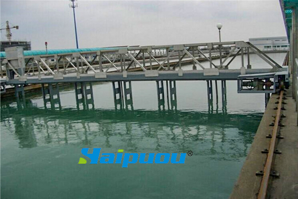 本設(shè)備由四點支撐行走大梁橫跨在平流式沉淀池上,雙邊驅(qū)動,池兩邊均鋪設(shè)鋼軌,從池的一端運(yùn)行到池子的另一端,邊行走邊吸泥,撞到行程控制,折返行走,回程吸泥,完成一個工作周期。